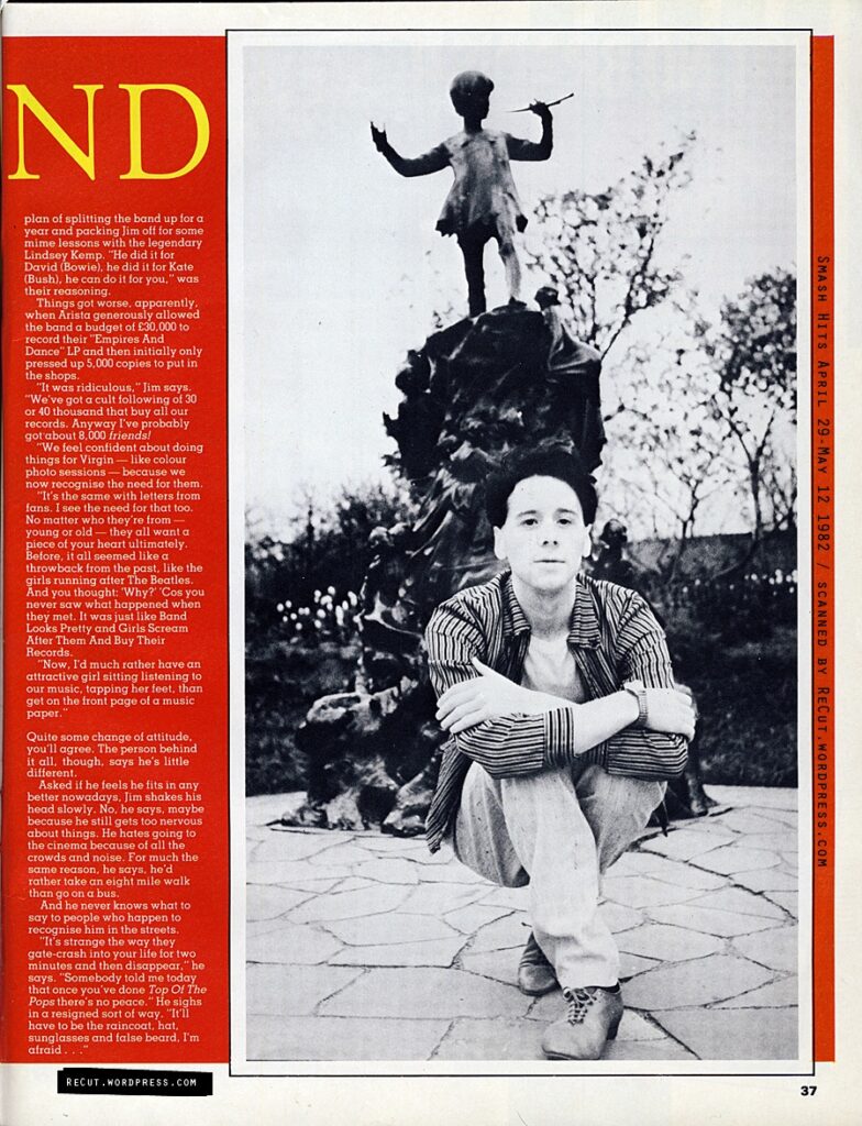 Interview with Jim Kerr in Smash Hits Magazine 1982 Priptona 11 years ago Interview with Jim Kerr in Smash Hits magazine, April 29-May 12, 1982. Share this: Share on Facebook (Opens in new window) Facebook Share on Pinterest (Opens in new window) Pinterest Email a link to a friend (Opens in new window) Email Share on Tumblr (Opens in new window) Tumblr Share on Telegram (Opens in new window) Telegram Share on Mastodon (Opens in new window) Mastodon